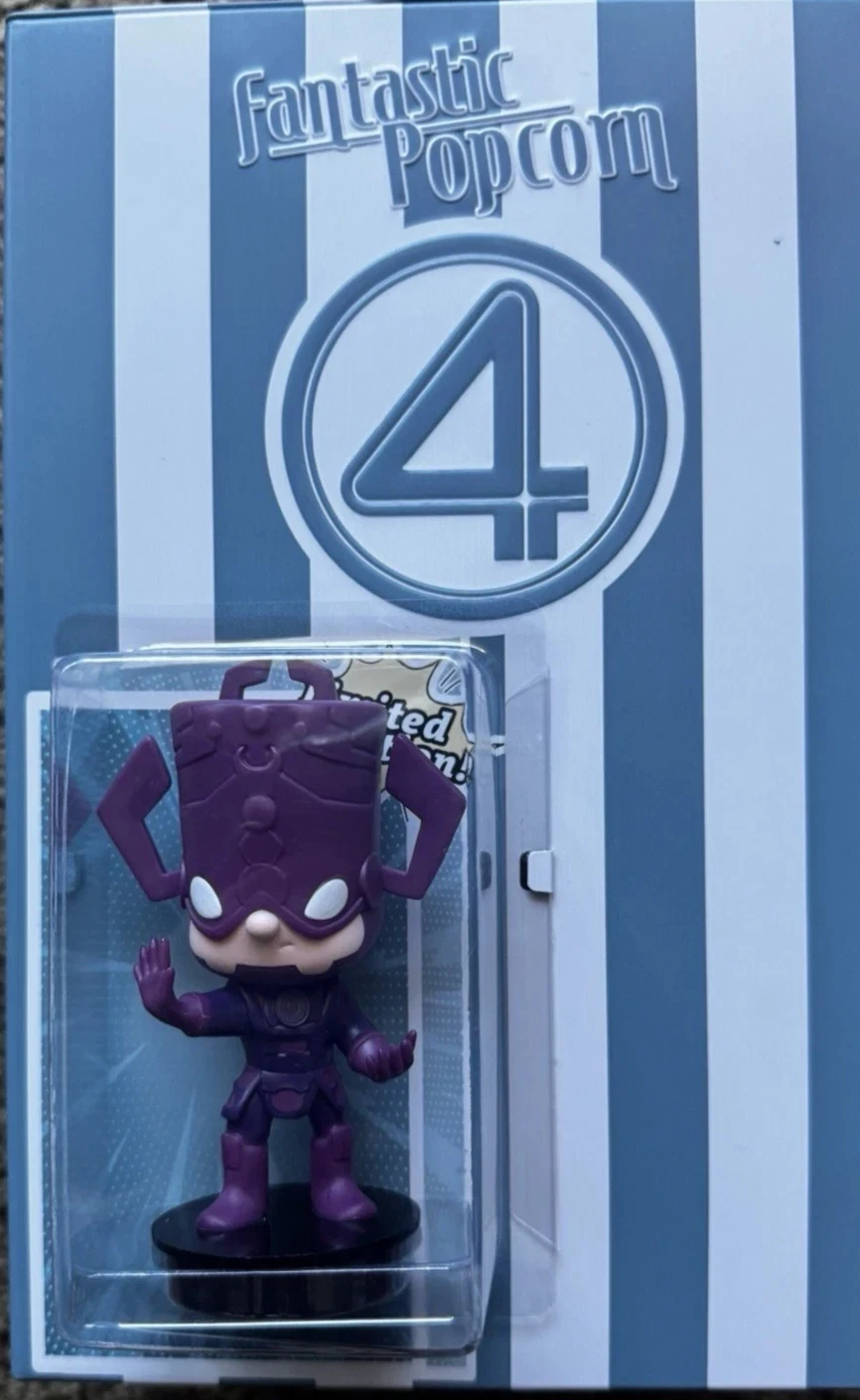 Galactus AMC exclusive popcorn bucket with figure topper. Limited edition collectible from Fantastic Four: First Steps movie.
