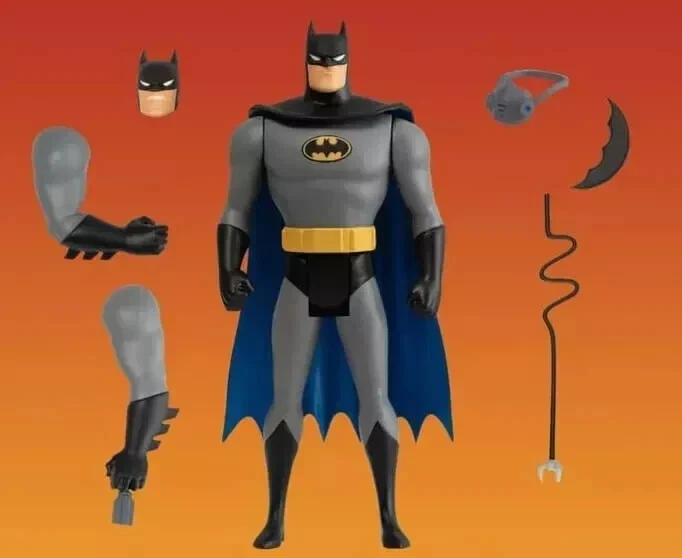 For fans craving size and detail, Mezco’s One:12 Collective Batman: The Animated Series delivers in 1:12 scale (~7″ tall) with over 30 points of articulation, wired cape, and three expressive head sculpts. Soft-goods suit, premium packaging, and full poseability bring animated charm to life.