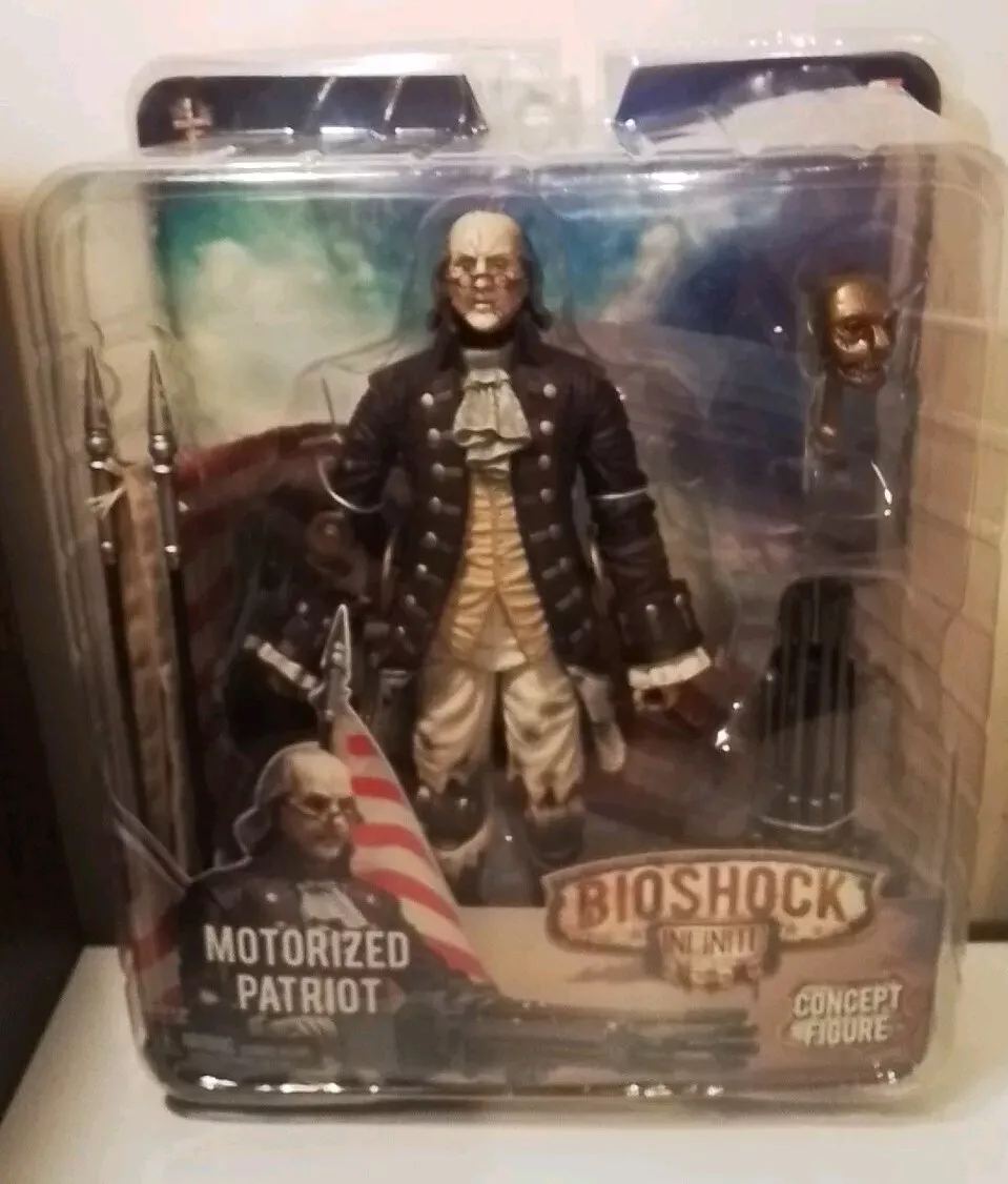 Bring Revolutionary spirit to your shelf with NECA’s Bioshock Infinite Benjamin Franklin Patriot motorized figure. Standing 9″ tall, it features a detailed sculpt of Franklin’s distinctive tricorn hat, colonial coat, and authentic facial likeness. This collectible offers motorized movement—turn on the switch to animate his iconic pose. He’s fully articulated for pose versatility and includes a display-ready base. Whether you’re a fan of Bioshock’s alternate-history universe or a collector of unique figures, this piece delivers both style and interactive flair.