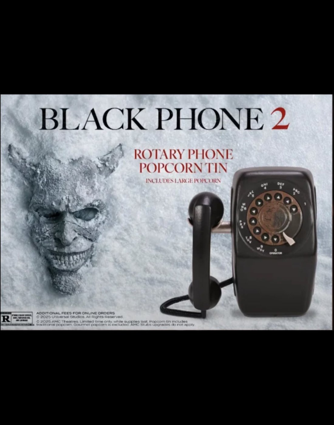 Answer the call with this Limited Edition Black Phone 2 Rotary Phone Popcorn Bucket. Designed after the film’s eerie telephone, it opens to hold your popcorn or display proudly as a horror collectible.