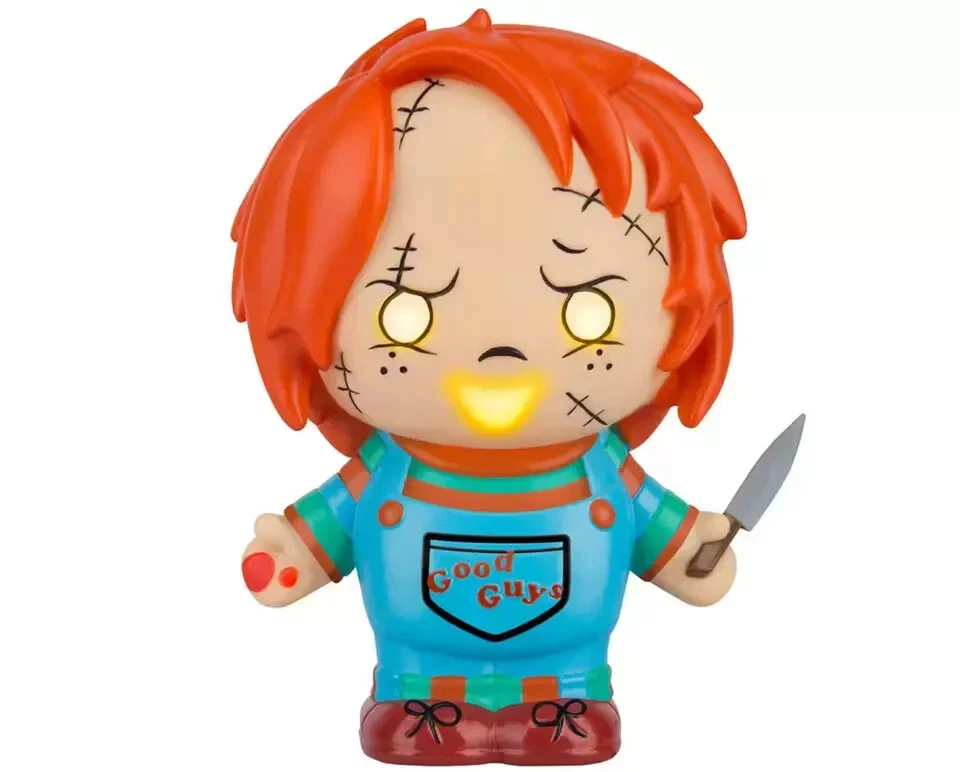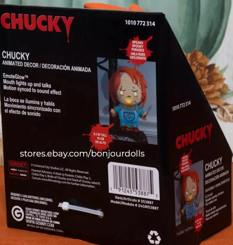 Elevate your horror collection with the Gemmy Emoteglow Animated Talking Chucky Figure — a chillingly fun tribute to the classic villain. This fully licensed figure from Gemmy Industries delivers both eerie charm and collectible appeal.