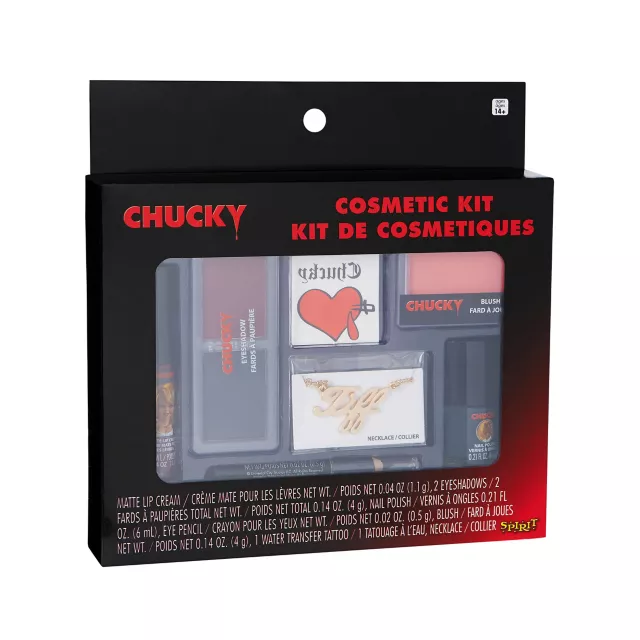Channel the murderous glam of Tiffany with this officially licensed Bride of Chucky makeup kit — includes eyeshadows, lip gloss, nail polish, temporary tattoo and more.