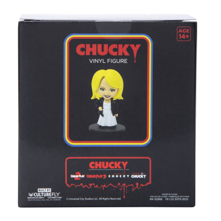 Perfect for display, gifting, or pairing with CultureFly’s matching Chucky figure—because every killer doll needs her partner in crime.
