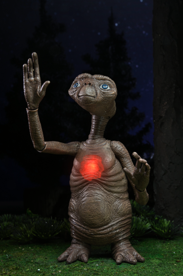 Celebrate the 40th anniversary of E.T. with NECA’s Deluxe Ultimate Action Figure featuring a light-up LED chest, interchangeable parts, communicator device, and potted plant. Fully poseable and beautifully detailed, this collector edition comes in special anniversary packaging.