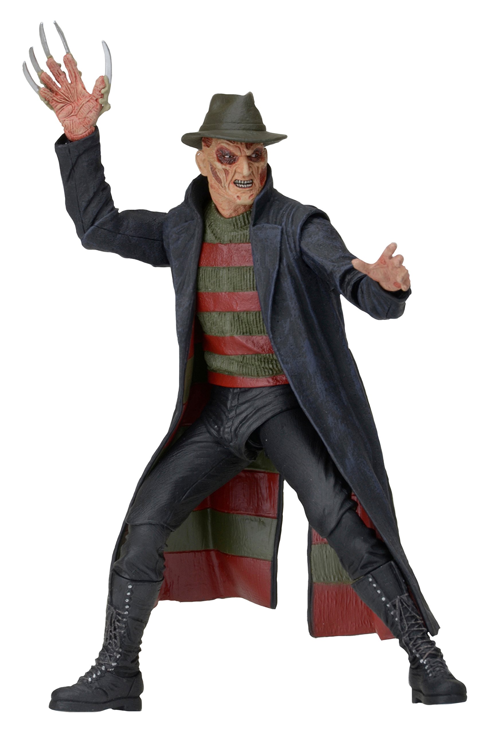 This highly detailed figure stands approximately 8 inches tall and is fully poseable, making it ideal for dynamic display. Freddy comes dressed in tailored fabric clothing and includes two interchangeable heads, allowing collectors to choose their preferred expression. His removable trench coat and hat complete the darker, more grounded look introduced in New Nightmare.