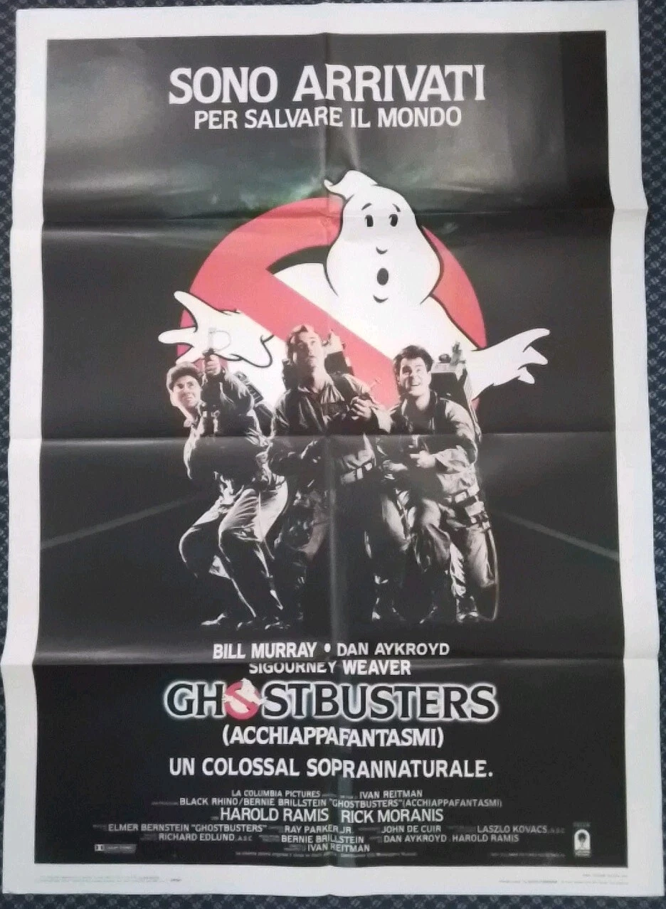 Original 1984 Italian theatrical poster for Ghostbusters. Vintage 39” x 55” cinema artwork—an essential collectible from a true 1980s classic.