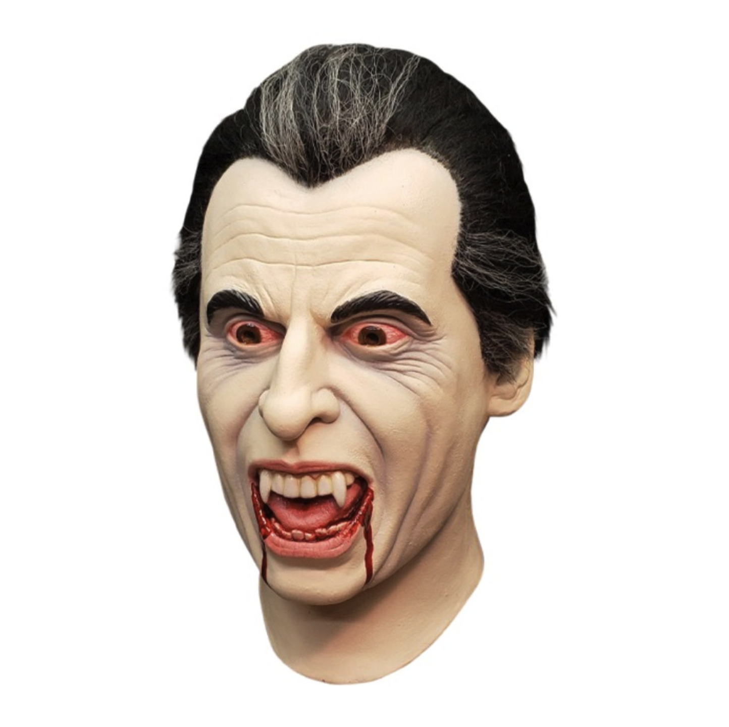 A screen-accurate Dracula Mask inspired by Horror of Dracula (1958). Features an incredible likeness of Christopher Lee, complete with bloodshot eyes and blood-soaked fangs. A must-have for Hammer Horror fans.