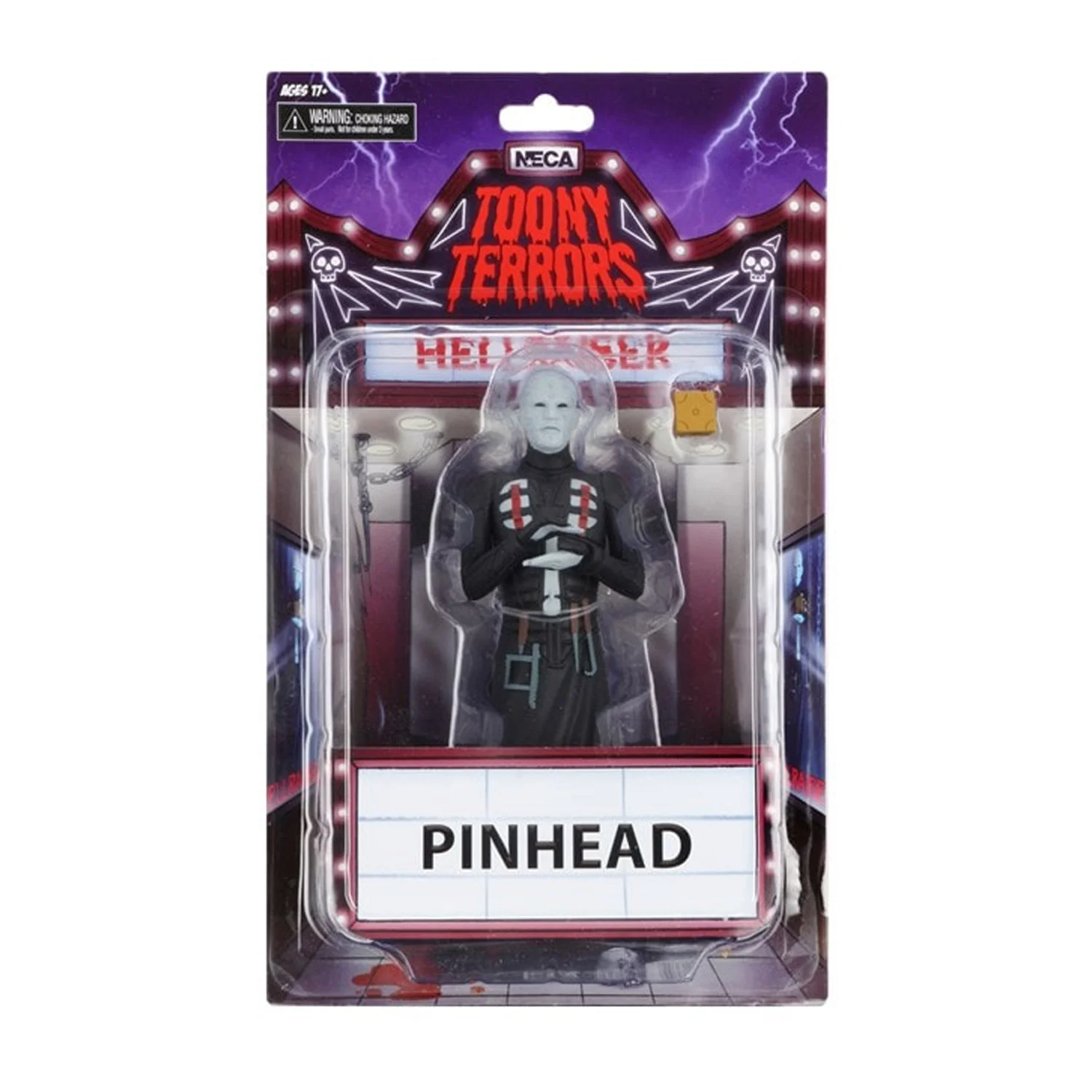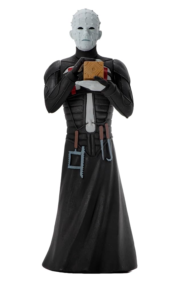 He’s got such sights to show your shelf! NECA’s Toony Terrors Pinhead 6” Action Figure reimagines the iconic Cenobite from Hellraiser with a twistedly fun cartoon makeover. Featuring his trademark grid-scarred head, black leather robes, and a mini Lament Configuration cube, this stylized figure blends horror and humour in NECA’s signature Toony style. Standing approximately 6 inches tall, Pinhead includes a bonus display backdrop for maximum shelf presence. Whether you’re a Clive Barker devotee or a collector of creepy-cute figures, this Hell Priest is ready to open the box—no chains attached.