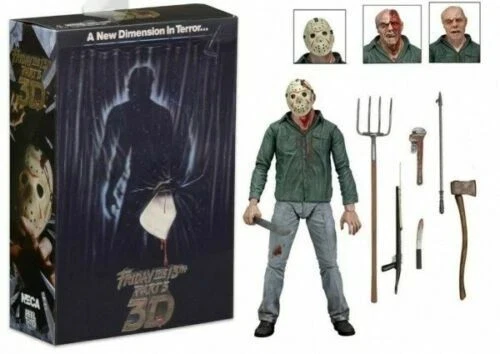 Bring home NECA’s Friday the 13th Part 3 Jason figure — the iconic 7-inch collectible featuring his first hockey mask, weapons, and screen-accurate detail.
