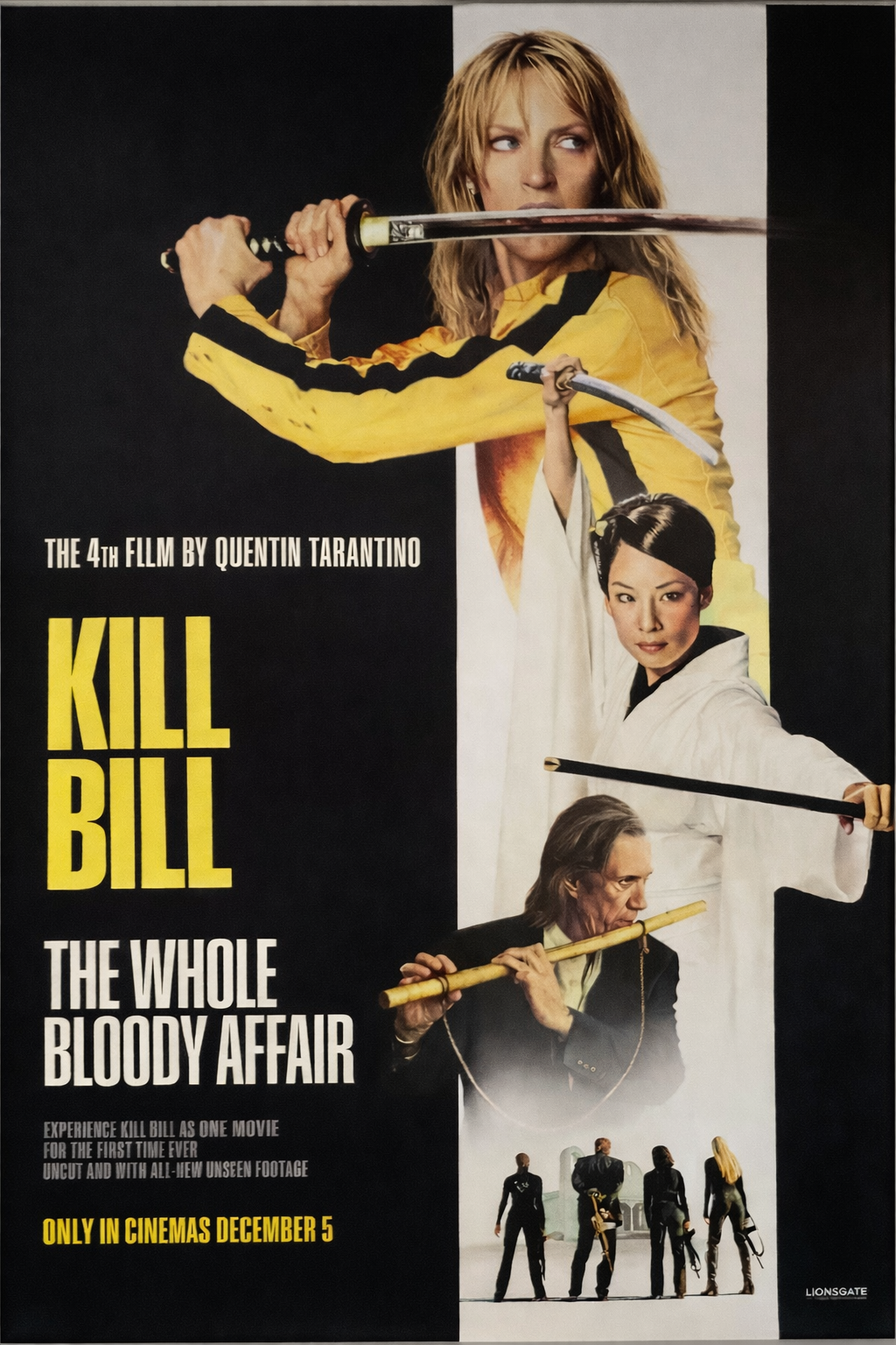 This original one sheet poster for Kill Bill: The Whole Bloody Affair celebrates Quentin Tarantino’s definitive cut of his two-part martial arts revenge epic. Combining Kill Bill: Vol. 1 and Vol. 2 into a single, uninterrupted experience, The Whole Bloody Affair represents Tarantino’s preferred presentation of the story.