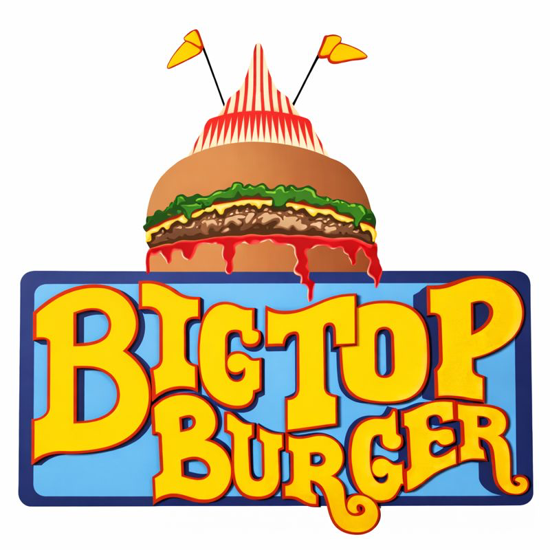 The Spirit Halloween Killer Klowns from Outer Space Big Top Burger Hanging Sign (16”) is a striking piece of cult horror décor inspired by the iconic intergalactic fast-food stand from Killer Klowns from Outer Space.