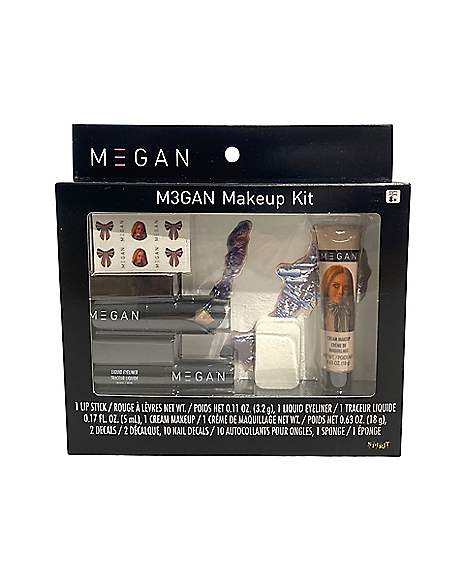 Transform into Blumhouse’s killer doll with the M3GAN Makeup Kit by Spirit Halloween. Includes lipstick, eyeliner, cream makeup, decals, and nail art.