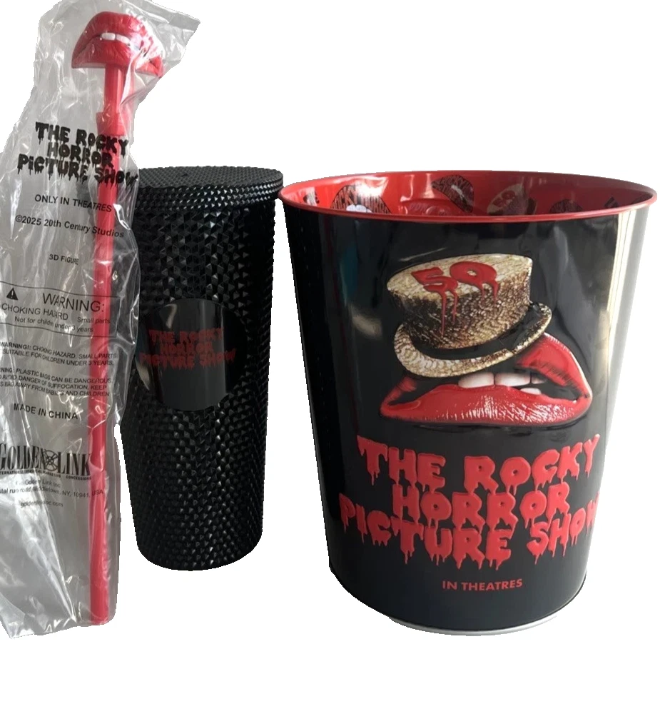 The Rocky Horror Picture Show has remained a cultural phenomenon for five decades. As a result, anniversary merchandise such as this has become highly sought after by collectors. This popcorn bucket and matching cup pay tribute to the film’s unmistakable imagery and enduring legacy.