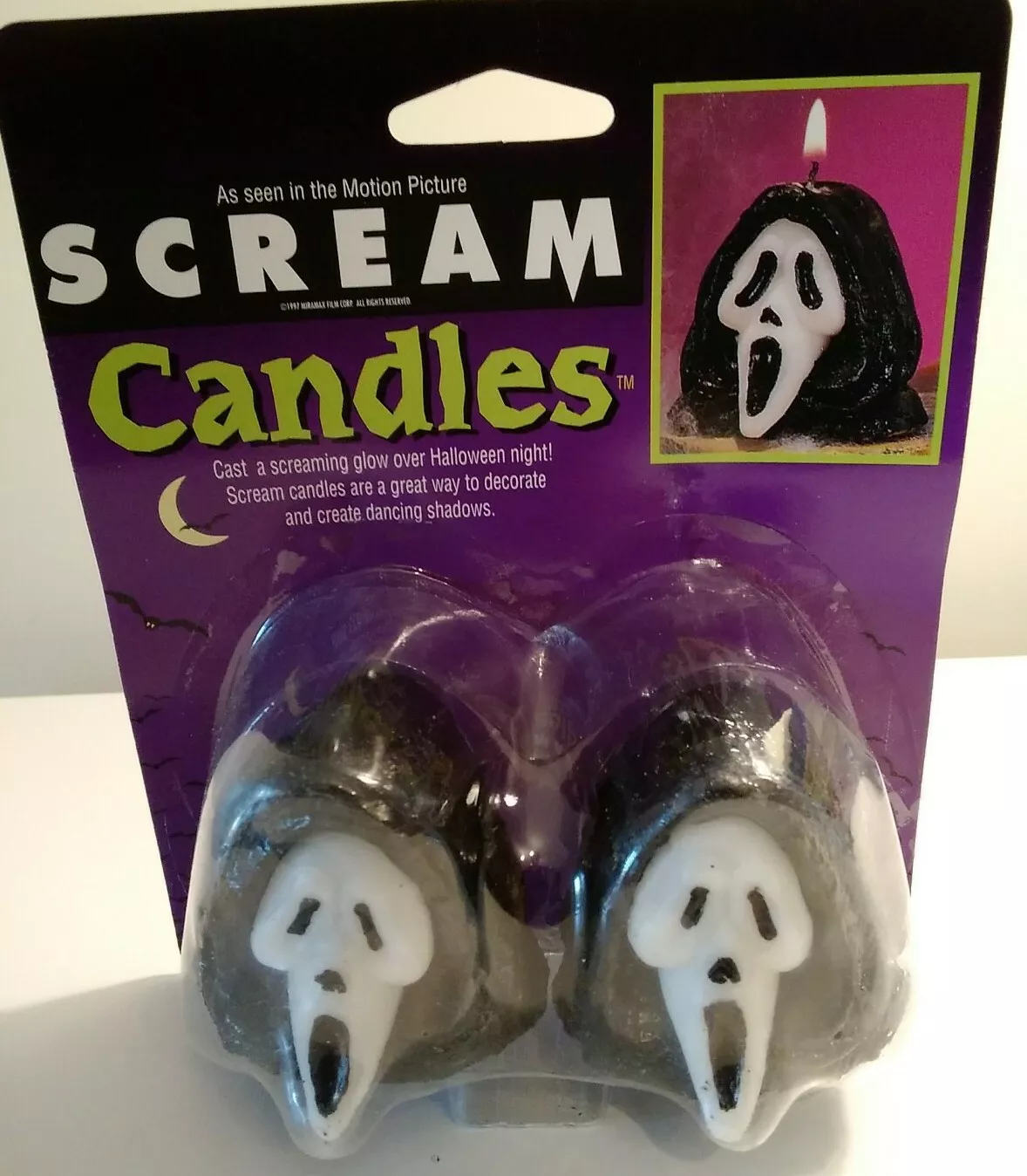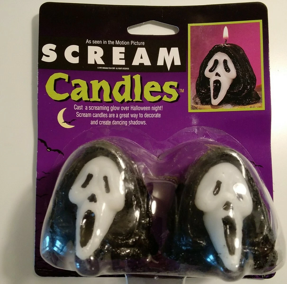 Official Funworld Scream Ghostface candles featuring the iconic mask design. Perfect horror Halloween decorations for parties, displays and collectors.