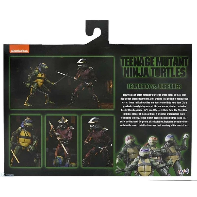 NECA TMNT Leonardo vs Shredder action figures set. Highly detailed, screen-inspired figures. Brand new and ideal for collectors.