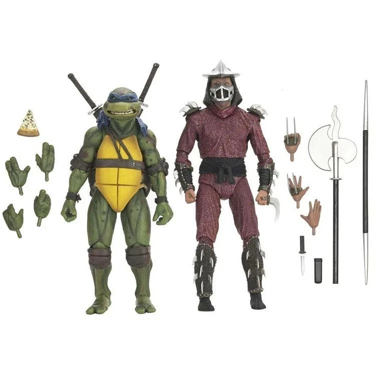Produced by NECA, this set features highly detailed 7-inch scale figures of Leonardo, the fearless leader of the Turtles, and Shredder, their legendary arch-enemy. Both figures showcase NECA’s signature sculpting, screen-inspired paintwork, and multiple points of articulation, making them ideal for both display and dynamic posing.