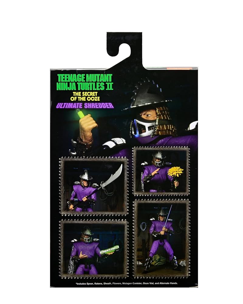 Face off against the ooze-fueled menace with NECA’s Secrets of the Ooze Shredder 7” Scale Action Figure. Loosed from the darkness of the film’s finale, this figure replicates Oroku Saki’s terrifying mutated form from TMNT II.