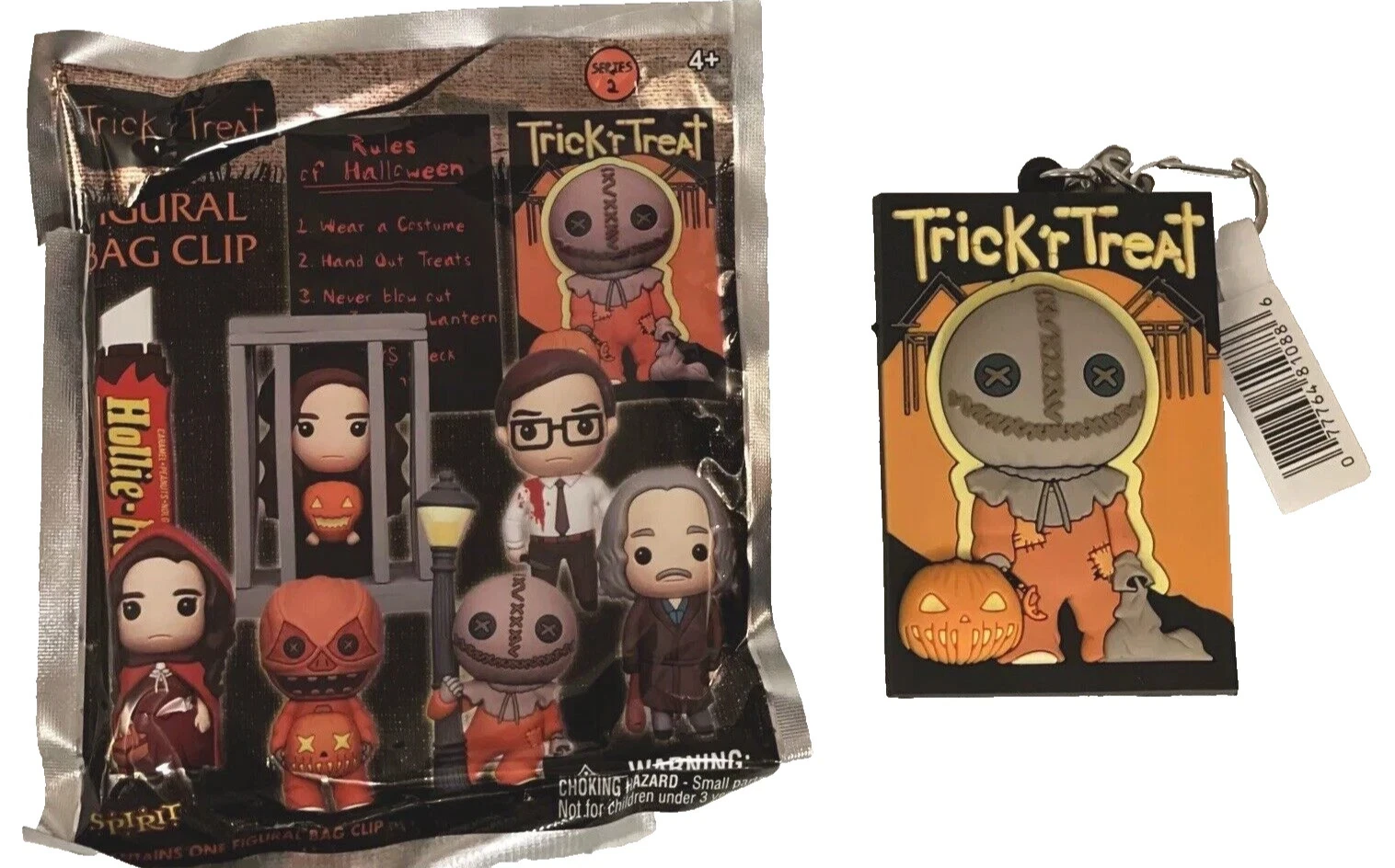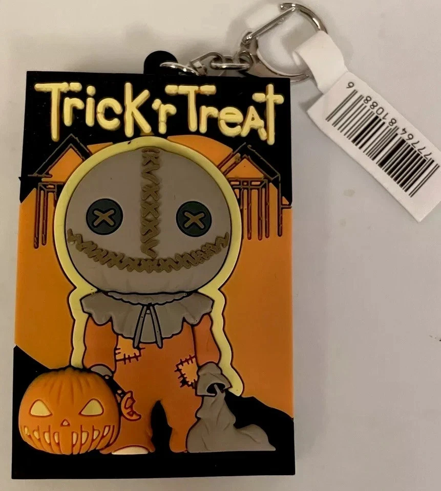 Crafted in durable figural form, Sam is instantly recognisable with his signature burlap mask and orange footie pajamas. The clip attaches easily to backpacks, purses, or keyrings, adding a playful but creepy touch to your everyday carry. Compact yet eye-catching, it’s equally at home as a practical accessory or as part of a display with other Trick ’r Treat collectibles.