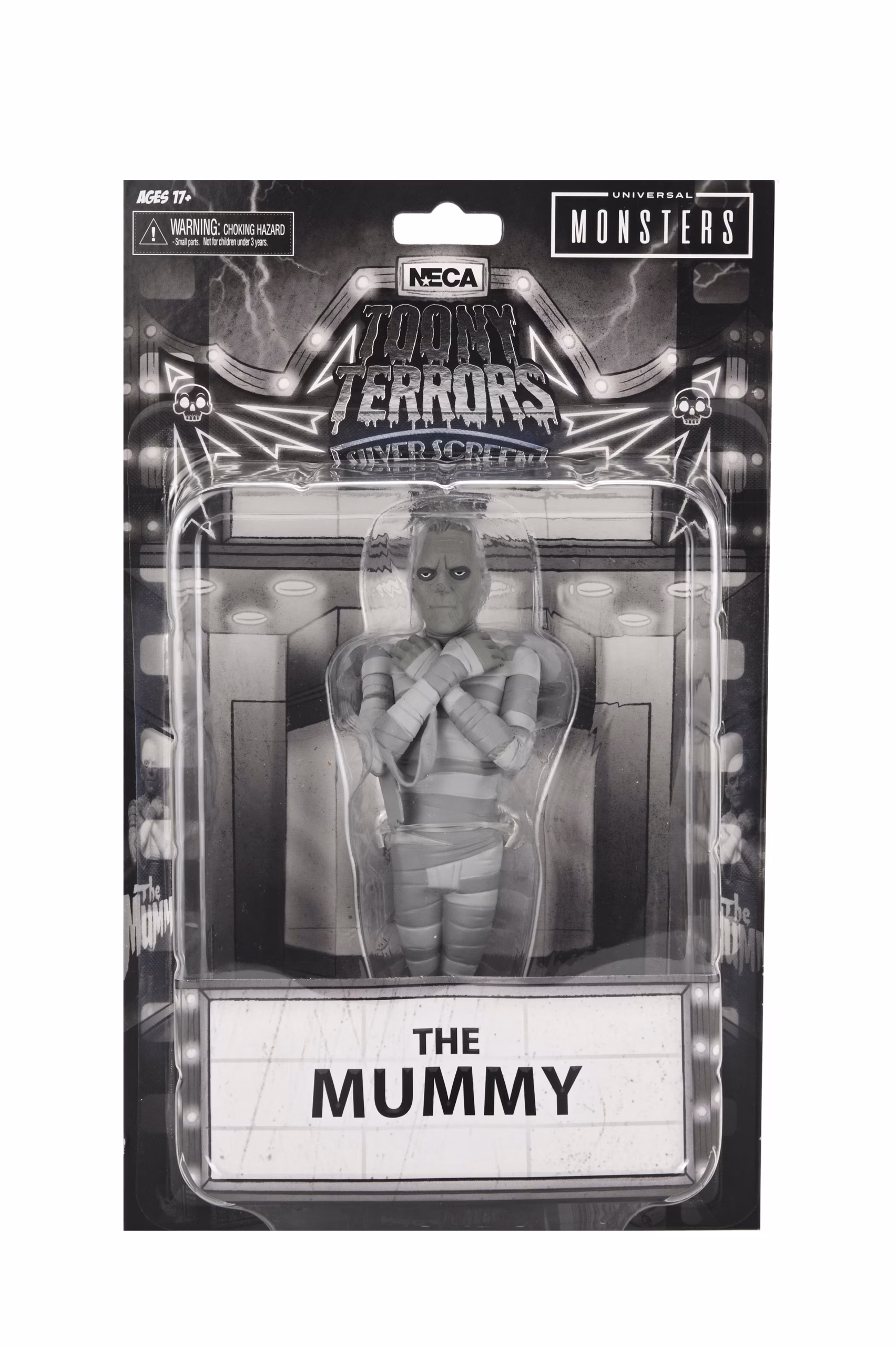 NECA’s B&W Toony Terrors Mummy blends Universal Monsters horror with vintage animation. 6” figure with grayscale deco & collector packaging.
